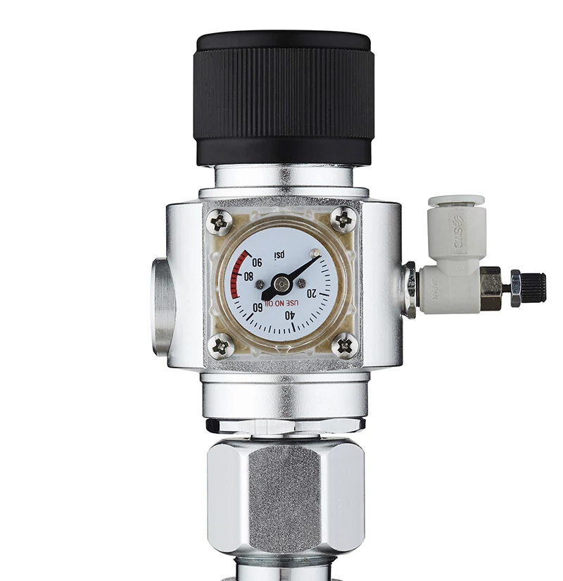 A CO2 palackokban a folyékony CO2 nyomása 50-70 Bar között van. Ez a nyomás túl magas, nyomáscsökkentő szelepre van szükség a biztonságos üzemeltetéshez. A nyomáscsökkentő szelep 1-3 bar értékre csökkenti a nyomást, így a többi CO2 tartozékkal biztonságosan használható. A tűszelep segítséget nyújt a pontos beállításhoz.