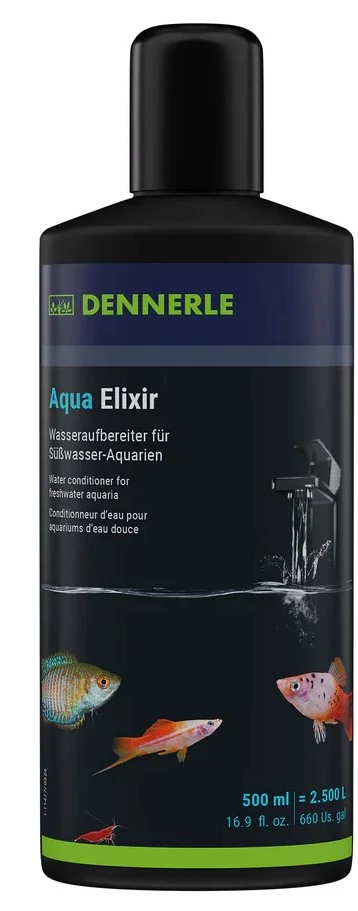 A Dennerle Aqua Elixier egy vízelőkészítő oldat, amelyet édesvízi akváriumokban használnak, hogy a csapvizet az akvárium lakói (halak, garnélák, csigák, növények) számára biztonságossá tegyék.