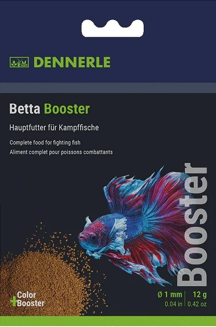 A Dennerle Betta Booster granulátum egy speciális, prémium minőségű díszhaltáp, amelyet kifejezetten a labirintkopoltyús halak, mint például a Betta halak (sziámi harcoshalak) és a gurámik számára fejlesztettek ki.