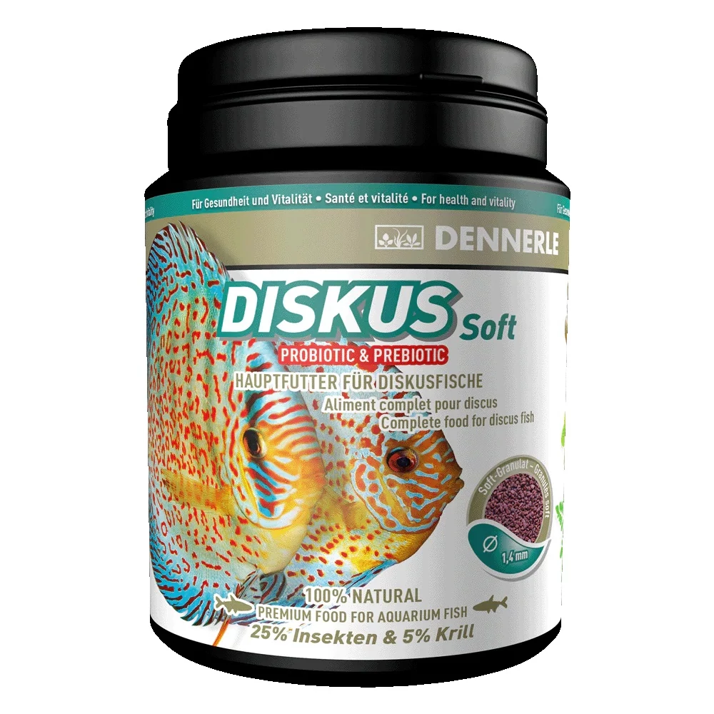 A Dennerle Diskus Softgranulat egy puha granulátum formájú főtáp, amelyet kifejezetten diszkoszhalak számára fejlesztettek ki. A granulátumot a diszkoszhalak természetes táplálkozási igényeinek megfelelően állították össze, így biztosítva az egészséges növekedést, a vibráló színeket és az erős immunrendszert.