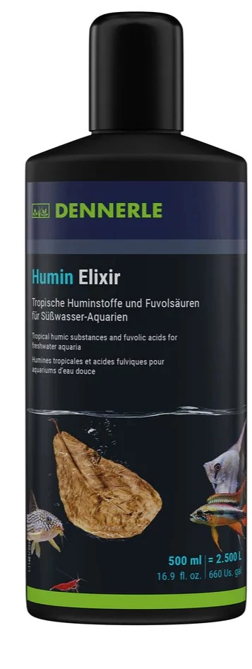 A Dennerle Humin Elixier egy speciális vízelőkészítő, amelyet arra fejlesztettek ki, hogy az akváriumi vizet a trópusi, úgynevezett "fekete vizes" biotópokhoz hasonlóvá tegye. Főleg olyan halak és garnélák tartásához és tenyésztéséhez ajánlott, amelyek természetes élőhelyükön huminsavban és csersavban gazdag vízhez szoktak.