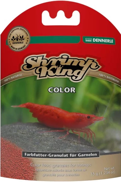 A Dennerle Shrimp King Color egy speciális garnéla eleség, amelyet a garnélák természetes színeinek és mintázatának intenzívebbé tételére fejlesztettek ki. Ez a termék főként a pigmentképződésért felelős természetes színezőanyagokat tartalmazza.