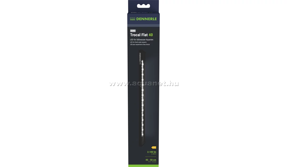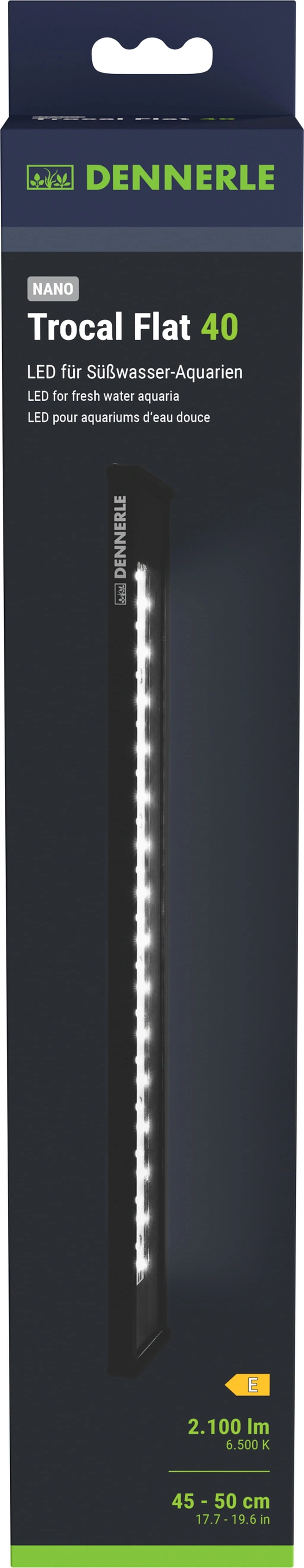 A Dennerle Trocal Flat 40 LED egy modern, lapos kialakítású LED világítás, amelyet kifejezetten édesvízi akváriumokhoz, különösen nano akváriumokhoz és akvakertészethez terveztek. Célja, hogy természetes és élénk megvilágítást biztosítson, miközben optimális körülményeket teremt a növények növekedéséhez és kiemeli az akváriumban élő állatok színeit.