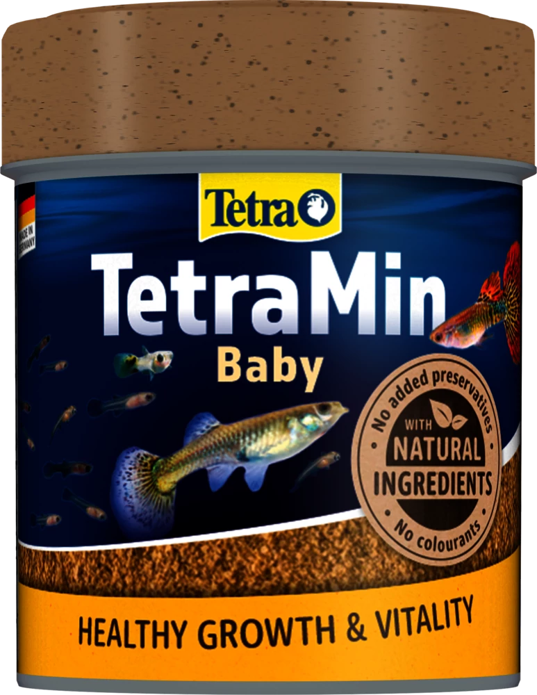 A TetraMin Baby biológiailag kiegyensúlyozott mikroeledel nagyon finomra szitált lemezekkel, amely teljes körű napi táplálást biztosít a bébi díszhalaknak, 1 cm nagyságig. A gondosan válogatott keverék kiváló minőségű, funkcionális tápanyagokat tartalmaz, nélkülözhetetlen vitaminokkal, ásványi anyagokkal és nyomelemekkel. A táp olyan prebiotikumokat tartalmaz, amelyek támogatják a halak testi funkcióit és az eledel átalakítását. Ez biztosítja a halak egészséges növekedését, különösen az élet korai szakaszaiban, illetve a fokozott ellenálló képességet. Az egyedülálló összetételű, kiváló minőségű természetes összetevőket tartalmazó, színezékek és hozzáadott tartósítószerek nélküli receptúra elősegíti az erős immunrendszert és javítja a vízminőséget. A TetraMin Baby segítségével díszhalai szépen fejlődnek, akváriumának vize pedig tiszta marad.