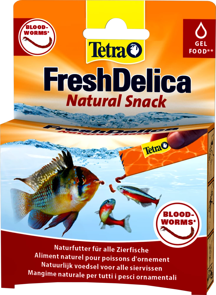 A Tetra Fresh Delica géles eledel tökéletes nassolnivaló az étkezések között. Rengeteg interakciót és etetési élményt biztosít a halakkal.