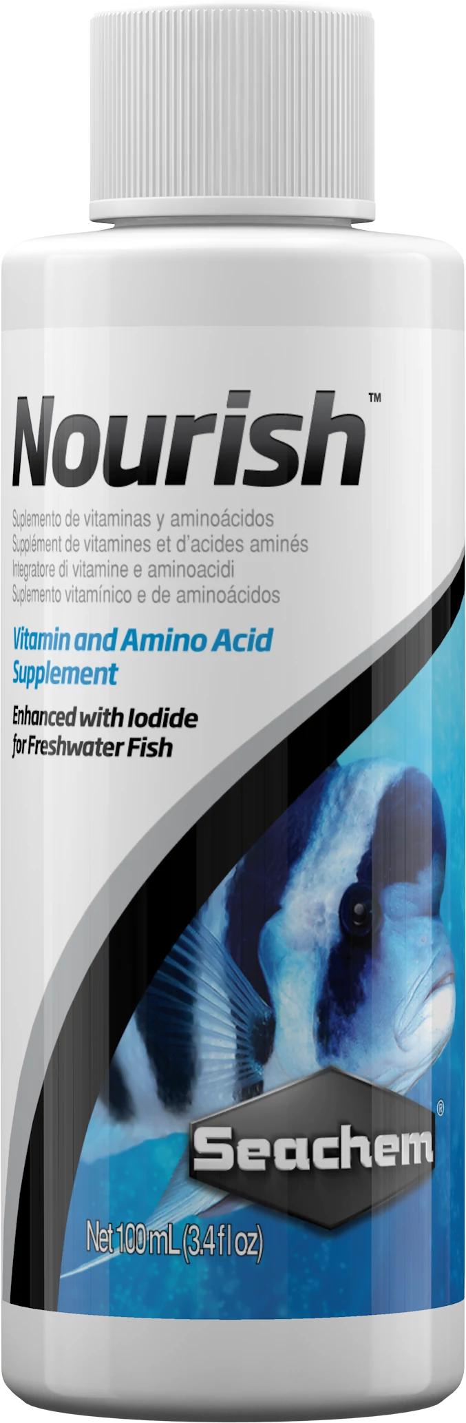 A Seachem Nourish egy átfogó vitamin-, aminosav- és nyomelem-kiegészítő, amelyet kifejezetten édesvízi akváriumi halak táplálkozási igényeinek kielégítésére fejlesztettek ki. Habár tengeri halakhoz is használható, elsődlegesen az édesvízi környezet hiányosságaira fókuszál. A modern akváriumokban, különösen zárt rendszerekben, a halak hosszú távú tartása során gyakran előfordulhatnak vitamin- és nyomelemhiányok, amelyek betegségekhez vagy gyengébb kondícióhoz vezethetnek. A Nourish ezeket a hiányosságokat hivatott pótolni, segítve a halak általános egészségét és vitalitását.