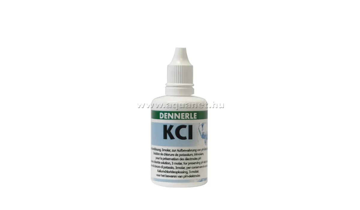 A Dennerle KCL oldat (kálium-klorid oldat), egy speciális folyadék, amelyet pH elektródák tárolására és karbantartására használnak az akvarisztikában. Nem a pH kalibrálására szolgál (mint a pH 4 vagy pH 7 oldatok), hanem az elektróda hosszú távú működőképességének és pontosságának megőrzésére.