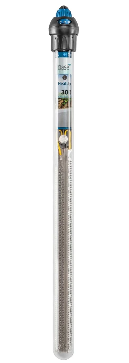 Az Oase HeatUp 300 egy automata belső akvárium fűtő, amelyet a német Oase cég gyárt. A kvarcüveg burkolat és a szabadalmaztatott bi-metál hőszabályozás biztosítja a pontos és egyenletes hőmérsékletet. A beépített jelzőfény mutatja, mikor működik a fűtés, a tapadókorongos tartó pedig egyszerű telepítést tesz lehetővé. A szabadalmaztatott technológia és a minőségi anyagok megbízható és pontos hőmérséklet-szabályozást biztosítanak. A piacon kapható hasonló teljesítményű fűtőknél kisebb, így a kisebb akváriumokban is diszkréten elfér. Egyszerűen és gyorsan beüzemelhető.