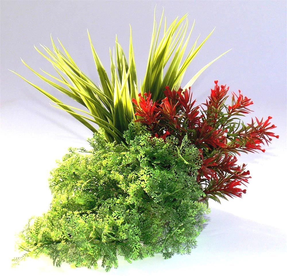 A Sydeco Composition Tropical egy 20 cm magas akváriumi műnövény, amely egy kompozícióban, vagyis egy csokorba rendezve mutat be különböző trópusi növénytípusokat. A francia Sydeco terméksorozat finoman kidolgozott és természetes kinézetű dekoráció. A népszerű Aquaplant dísznövény sorozat kapható természetes és színes változatban, edényben vagy edény nélkül önmagában, valamint sokféle méretben és alakban. Létezik bokros, sziklanövényi és páfrány változatban, jól takarják a szűrőberendezés nem túl megnyerő látványát.