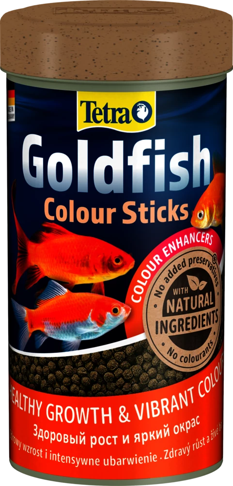 A Tetra Goldfish Colour Sticks tápláló, kiegyensúlyozott, színfokozókat tartalmazó, teljes értékű eledel aranyhalaknak és más hidegkedvelő halak számára. A kiegyensúlyozott étrend és az optimálisan összeállított receptúra támogatja a halak egészségét és jóllétét. A magas spirulina alga tartalma fokozza a betegségekkel szembeni ellenállást, és elősegíti az intenzív színeket. A lebegő táplálékrudacskák magas emészthetőségüknek köszönhetően minimálisra szorítják a hulladékképződés és a vízszennyezés mértékét. A kiváló minőségű természetes alapanyagokat tartalmazó, színezőanyagoktól és hozzáadott tartósítószerektől mentes egyedi receptúra, valamint az optimálisan összeállított fehérjekeverék elősegíti az ideális növekedést, vitalitást és a fokozott ellenálló képességet. A Tetra Goldfish Colour Sticks használatával aranyhalai szépen fejlődnek, az akvárium vize pedig tiszta és áttetsző marad.