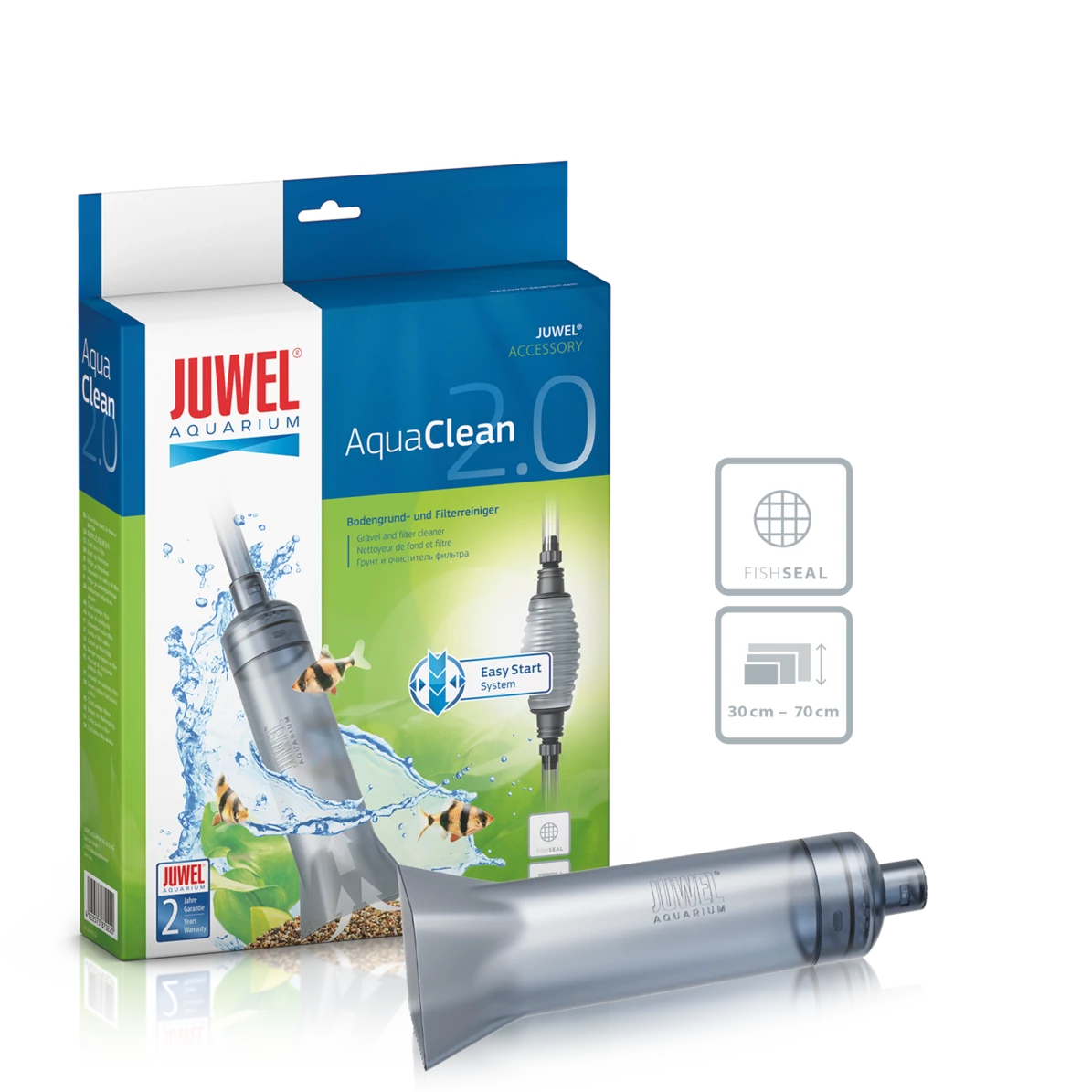 Kombinálható a meglévő Juwel szűrő szívócsövével, vagy közvetlenül tisztítható vele az aljzat. A Easy Start rendszer segítségével könnyen megindítható a vízáramlás. A csövet klipszekkel rögzíthetjük az akvárium és a vödör falához.